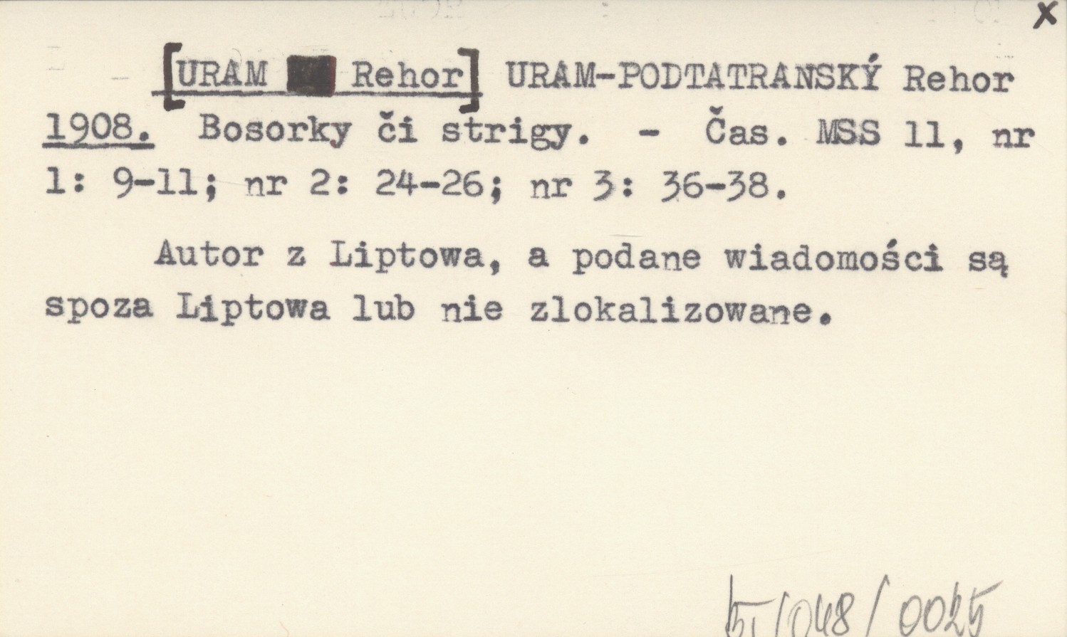 URAM-PODTATRANSKÝ Rehor [URAM Rehor] 1908 Bosorky či strigy.