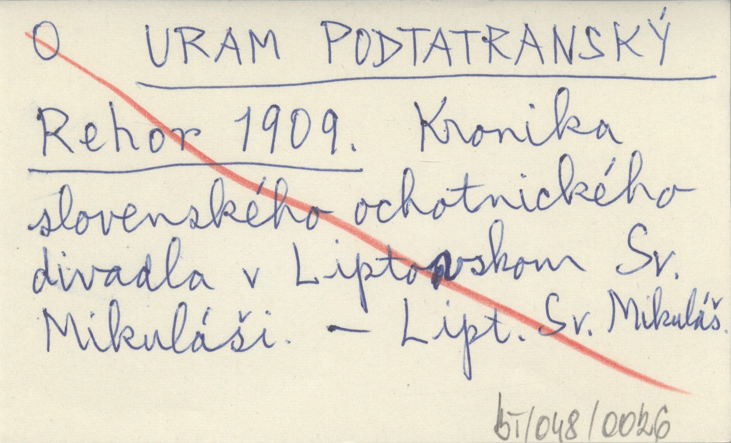 URAM PODTATRANSKÝ Rehor 1909 Kronika slevenského ochotnického divadla v Liptovskom Sv. Mikuláši.