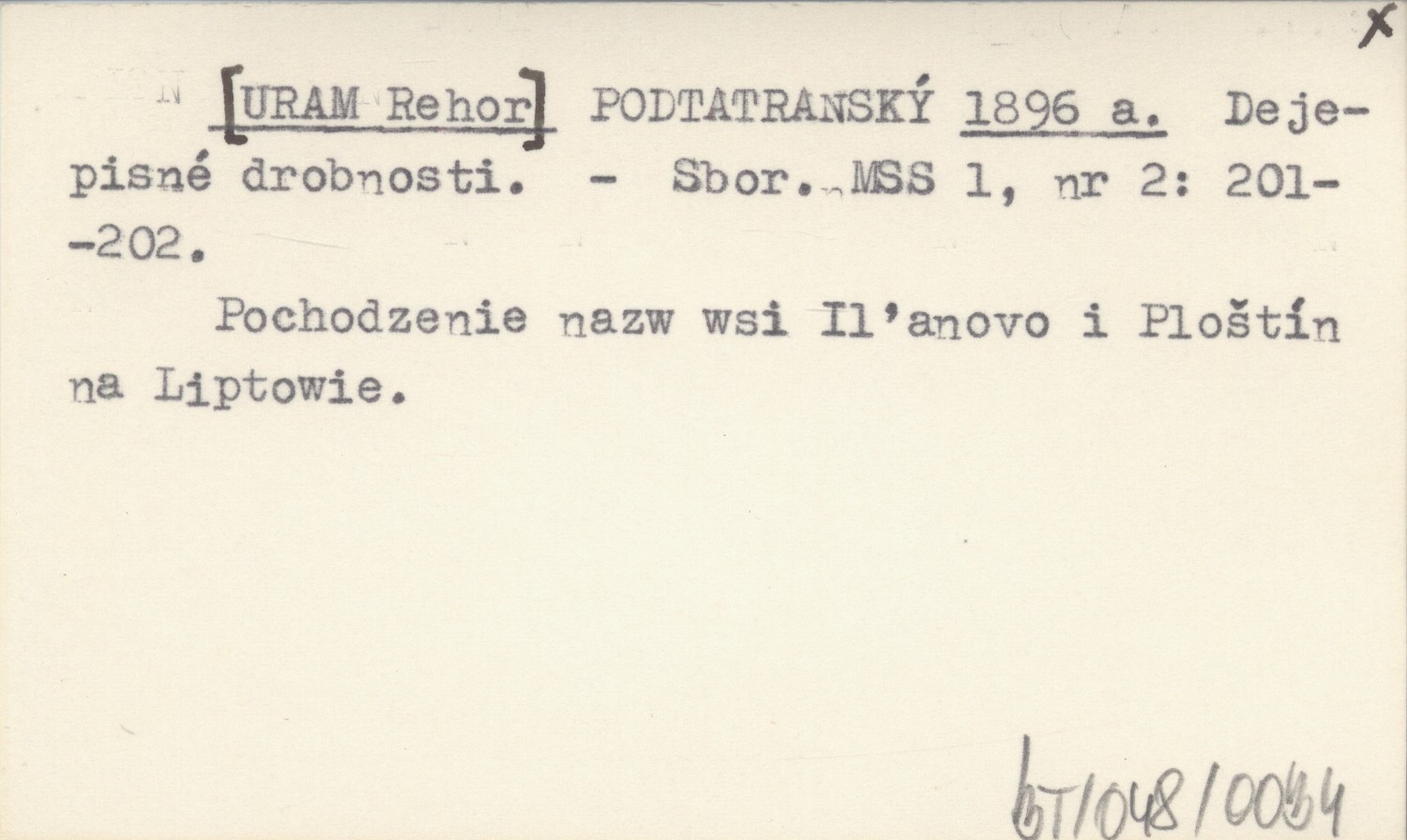 Sborník Museálnej Slovenskej Spoločnosti, 1, nr 2: 201-202. Pochodzenie nazw wsi Iľanovo i Ploštín na Liptowie.