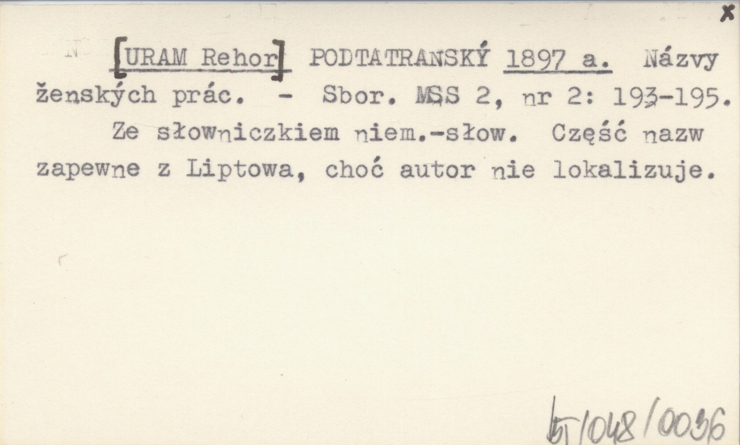 PODTATRANSKÝ [URAM Rehor] 1897 a Názvy ženských prác.