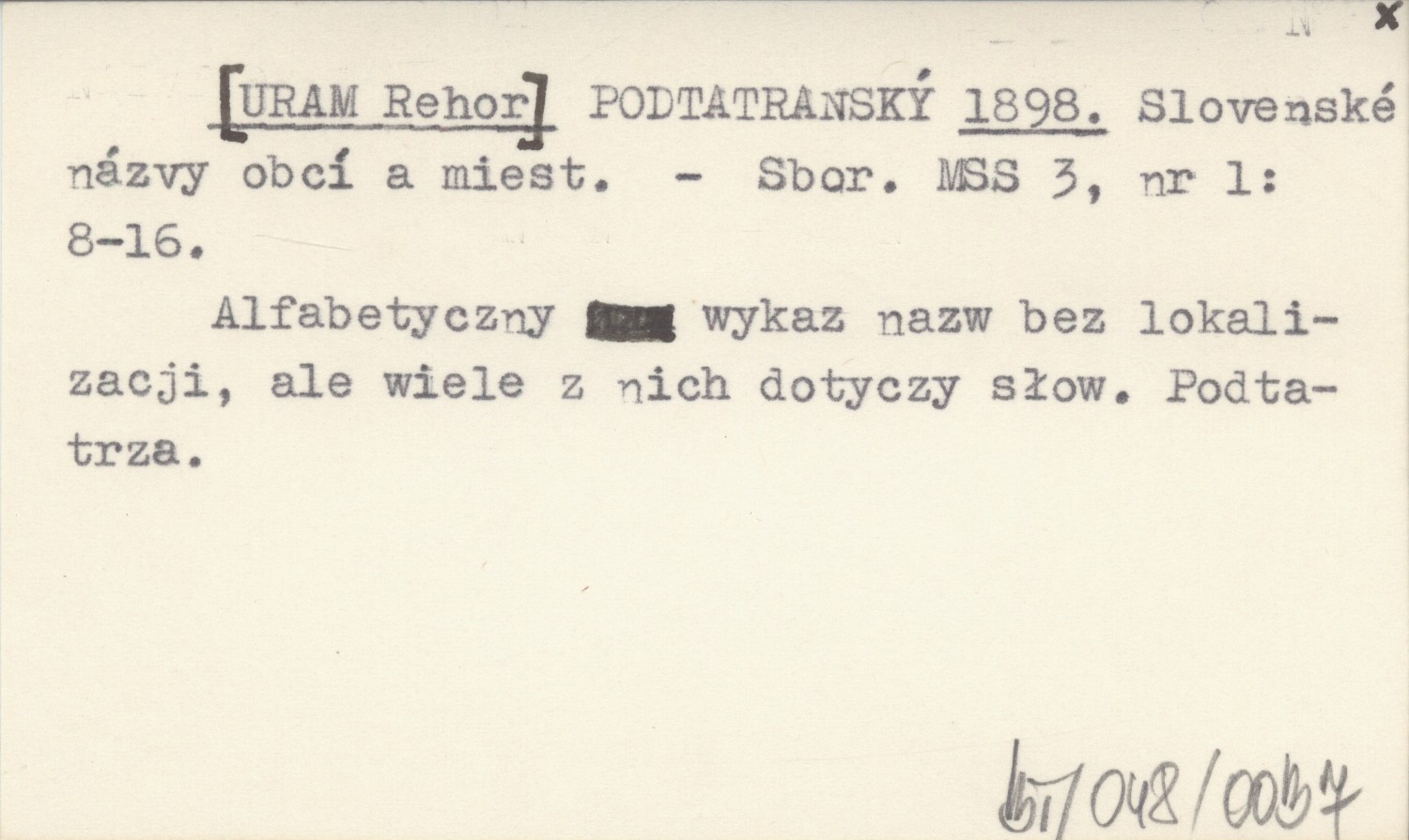 PODTATRANSKÝ [URAM Rehor] 1898 Slovenské názvy obcí a miest.