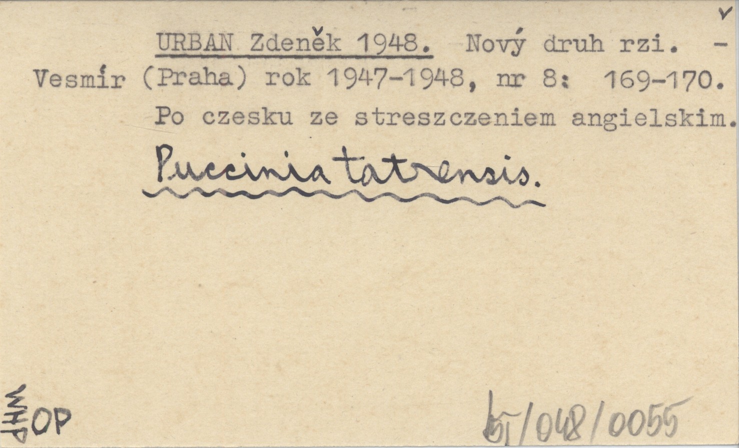 Vesmír (Praha) , R. 1947-1948, nr 8: 169-170. Puccinia tatrensis. Po czesku ze streszczeniem angielskim.