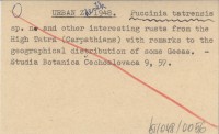 URBAN Zdeněk 1948 Puccinia tatrensis sp. n. and other interesting rusts from the High Tatra (Carpathians) with remarks to the geographical distribution of some Geeae.