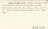 URBAN Zdeněk 1952 Hrdze a sneti v Temnosmrečinovej doline vo Vysokých Tatrách.