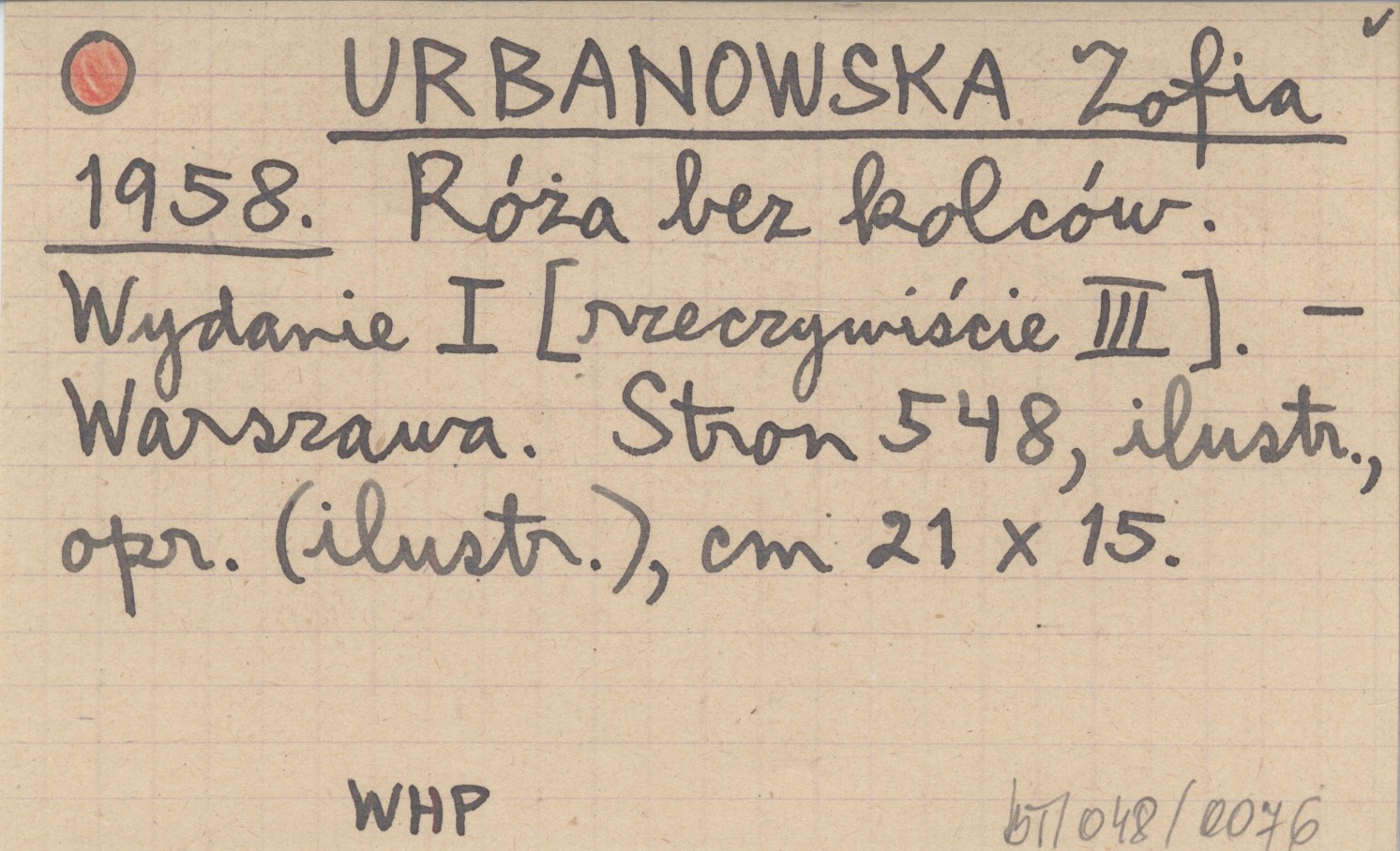 URBANOWSKA Zofia 1958 Róża bez kolców. Wydanie I [rzeczywiście III].