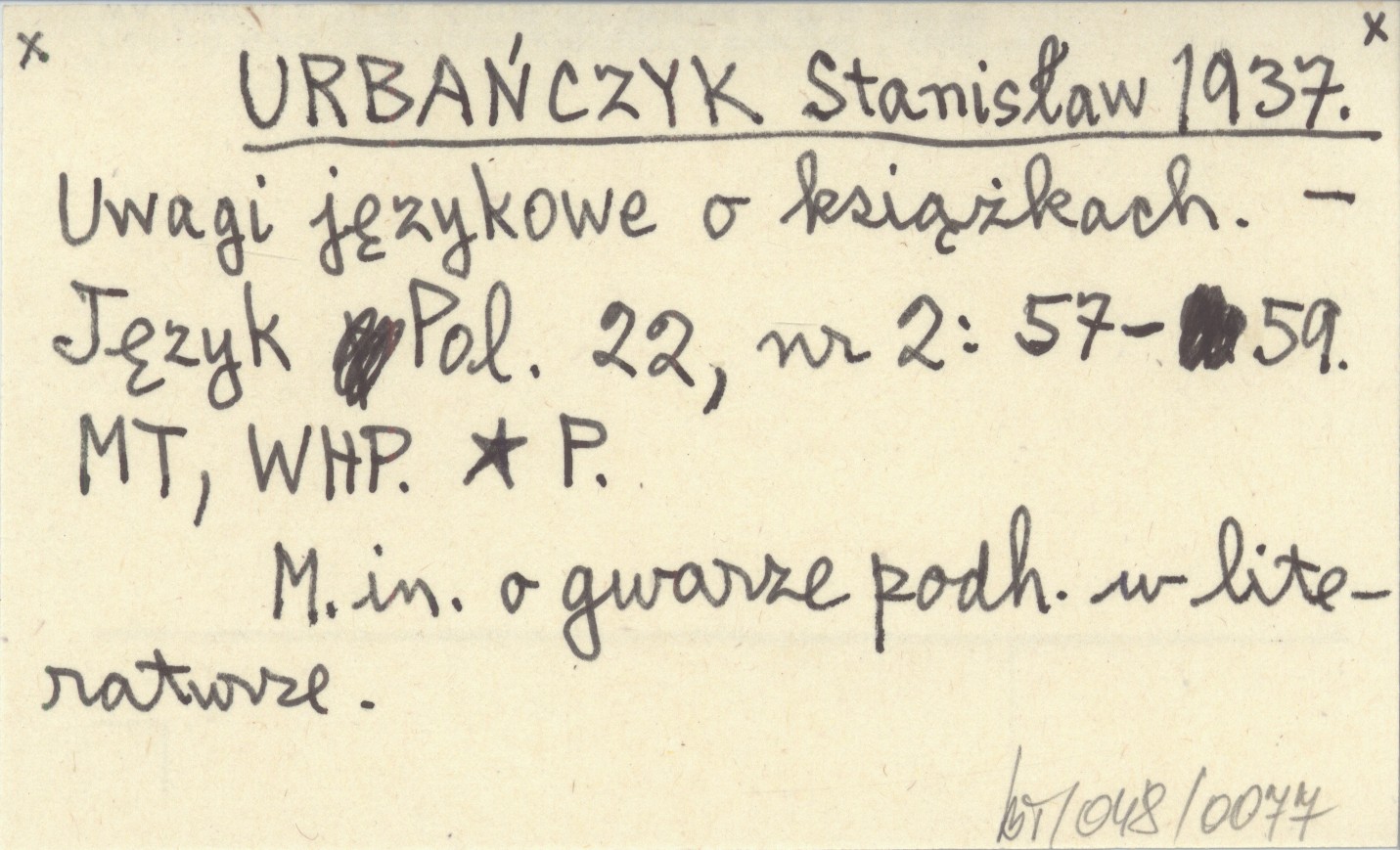 URBAŃCZYK Stanisław 1937 Uwagi językowe o książkach.