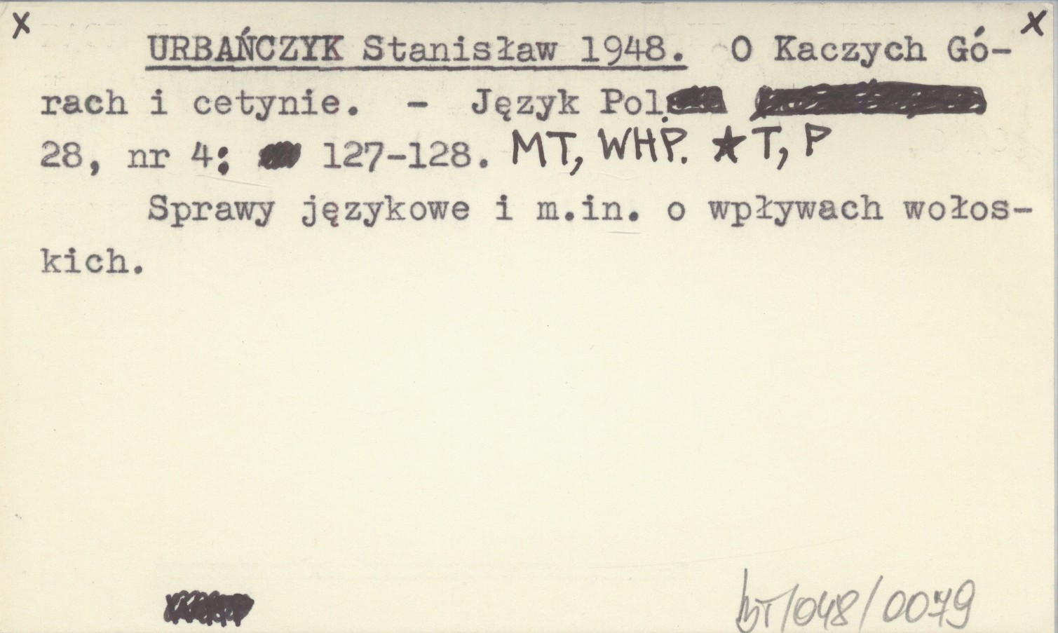 Język Polski, 28, nr 4: 127-128. Sprawy językowe i m.in. o wpływach wołoskich.