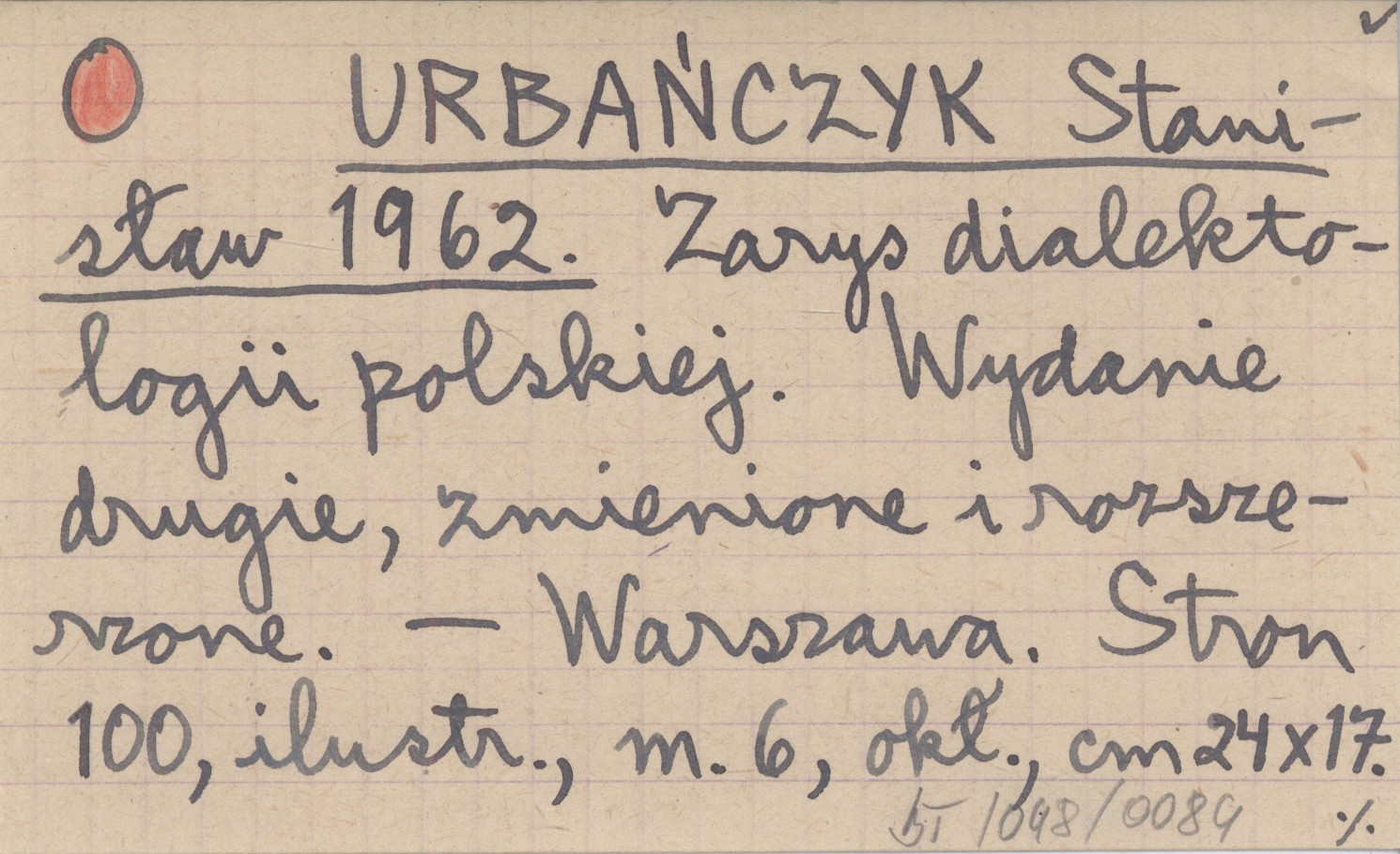URBAŃCZYK Stanisław 1962 Zarys dialektologii polskiej. Wydanie drugie, zmienione i rozszerzone.