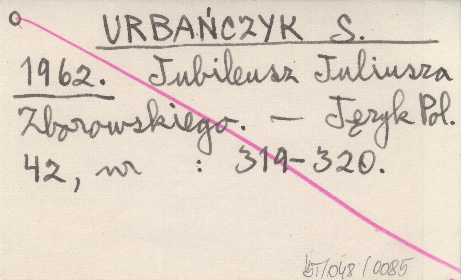 URBAŃCZYK S. 1962 Jubileusz Juliusza Zborowskiego.