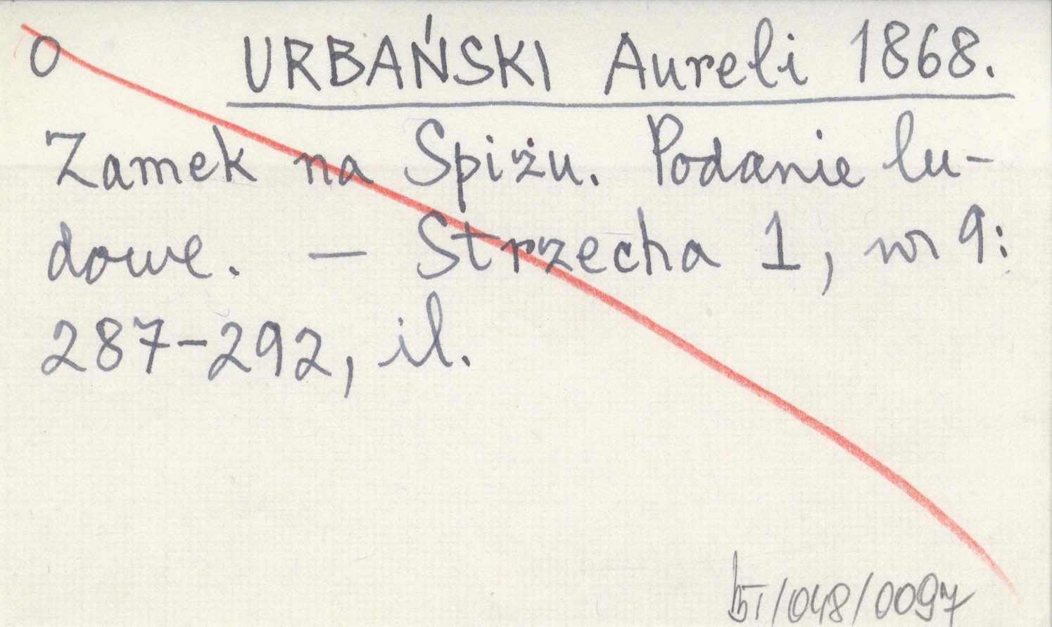URBAŃSKI Aureli 1868 Zamek na Spiżu. Podanie ludowe.
