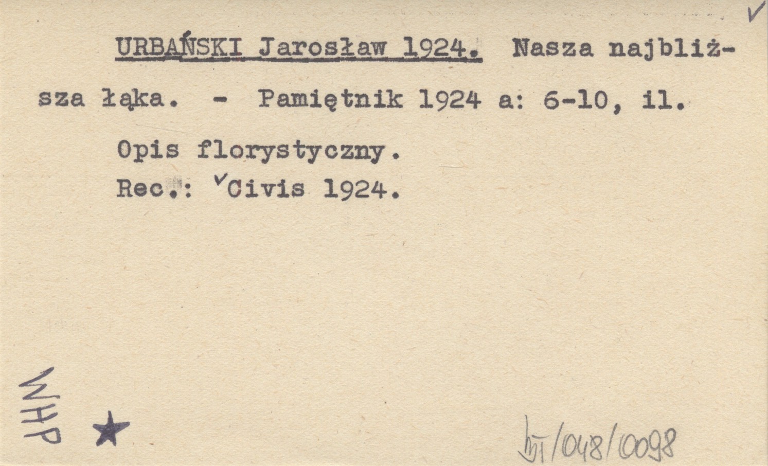 Pamiętnik, 1924 a: 6-10, il. Opis florystyczny. REC: Civis 1924