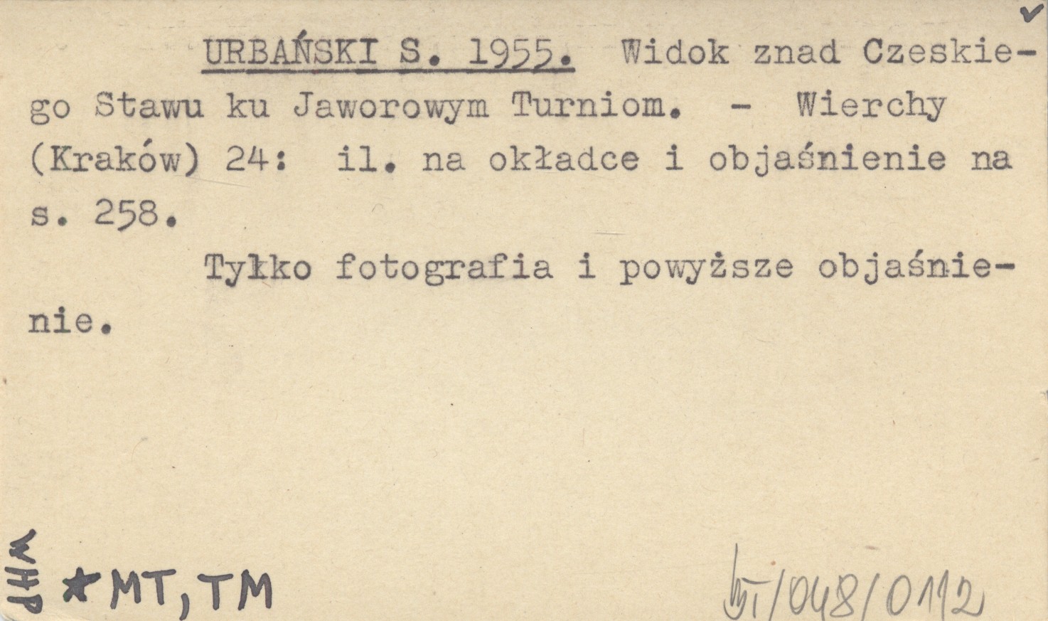 URBAŃSKI S. 1955 Widok znad Czeskiego Stawu ku Jaworowym Turniom.