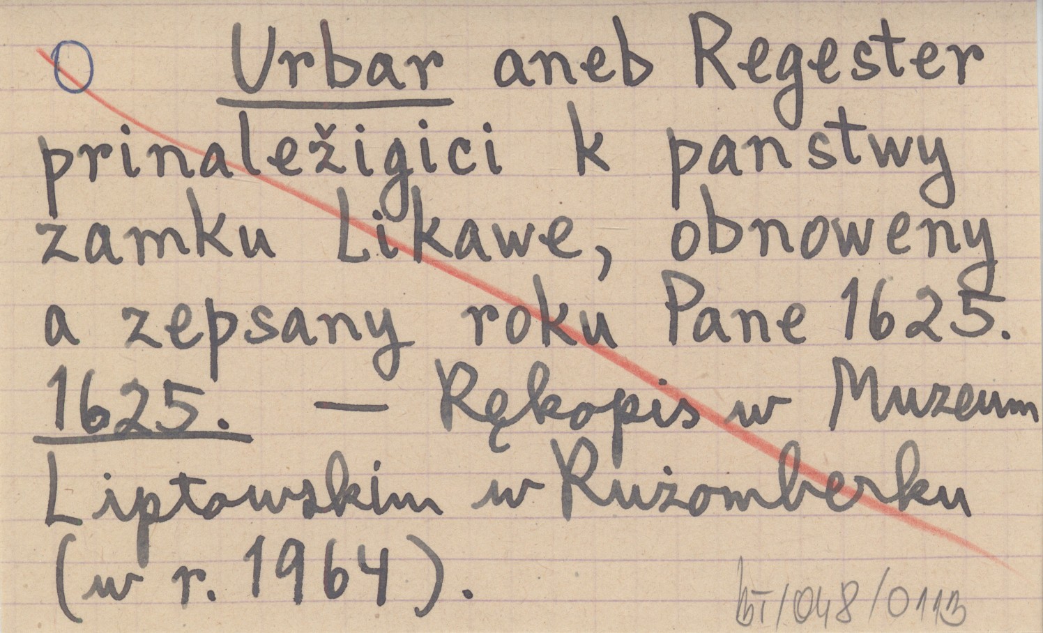 Urbar aneb Regester prinaležigici k panstwy zamku Likawe, obnoweny a zepsany roku Pane 1625. 1625