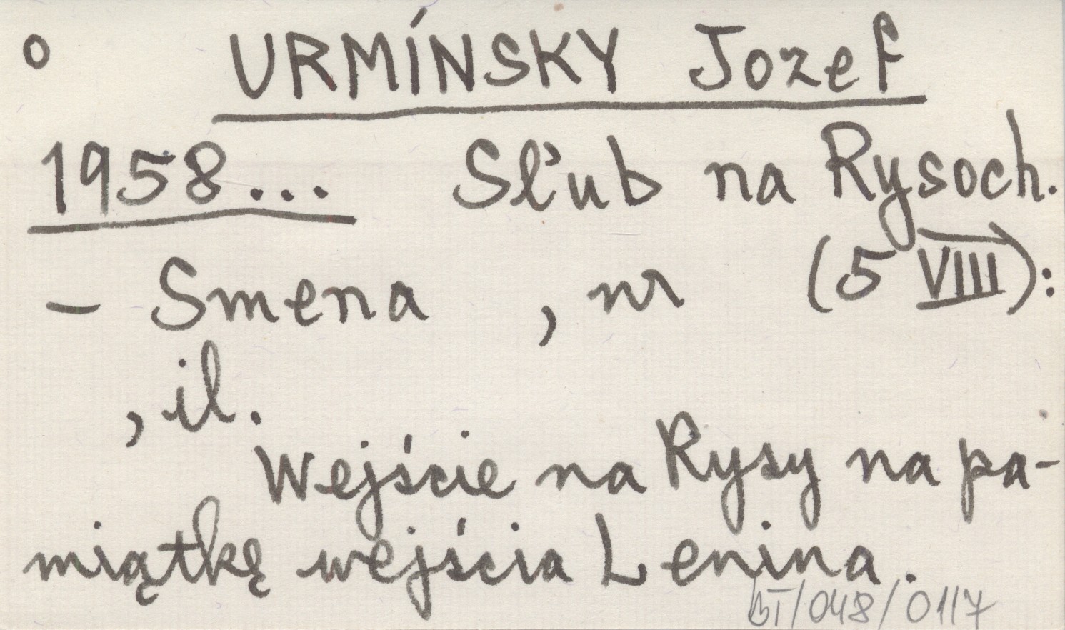 Smena, 5 VIII, il. Wejście na Rysy na pamiątkę wejścia Lenina.