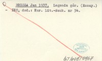 BRZOZA Jan 1937 Legenda gór. (Essay.)