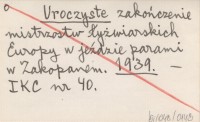 Uroczyste zakończenie mistrzostw łyżwiarskich Europy w jeździe parami w Zakopanem. 1939