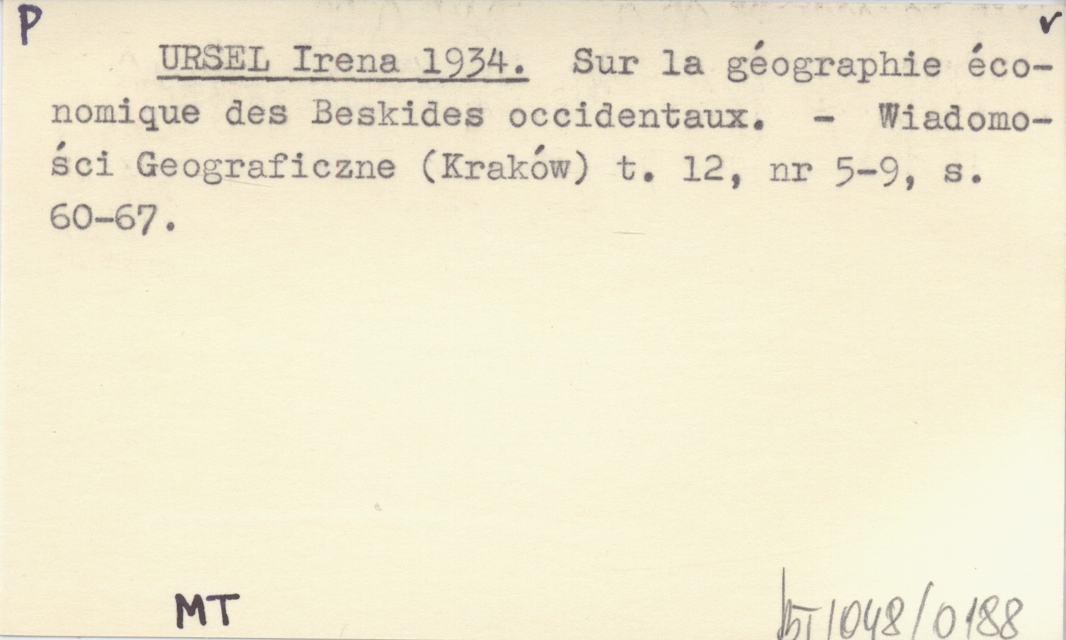URSEL Irena 1934 Sur la géographie économique des Beskides occidentaux.