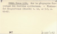 URSEL Irena 1934 Sur la géographie économique des Beskides occidentaux.