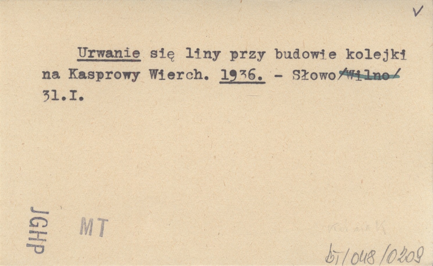 Urwanie się liny przy budowie kolejki na Kasprowy Wierch. 1936