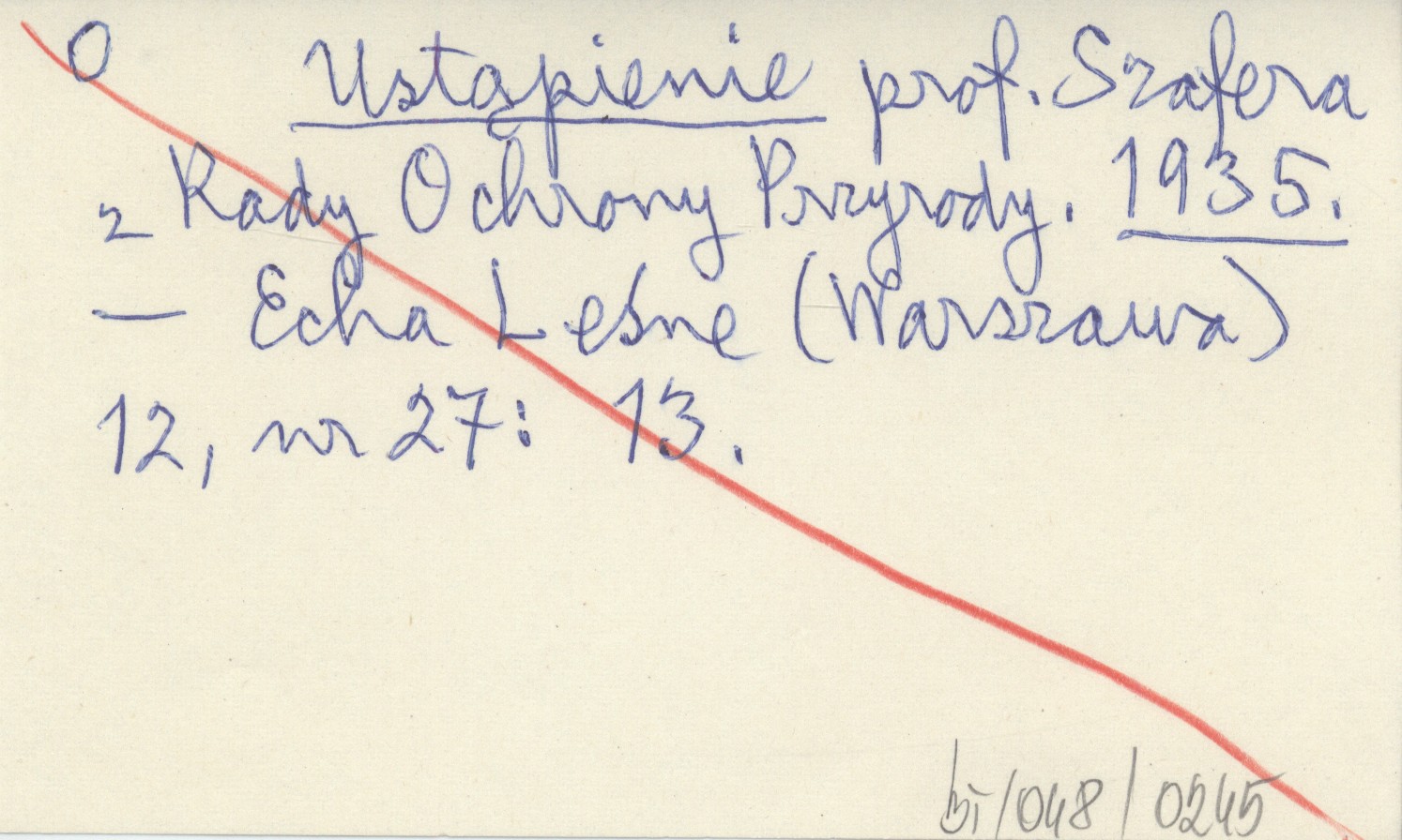 Ustąpienie prof. Szafera z Rady Ochrony Przyrody. 1935
