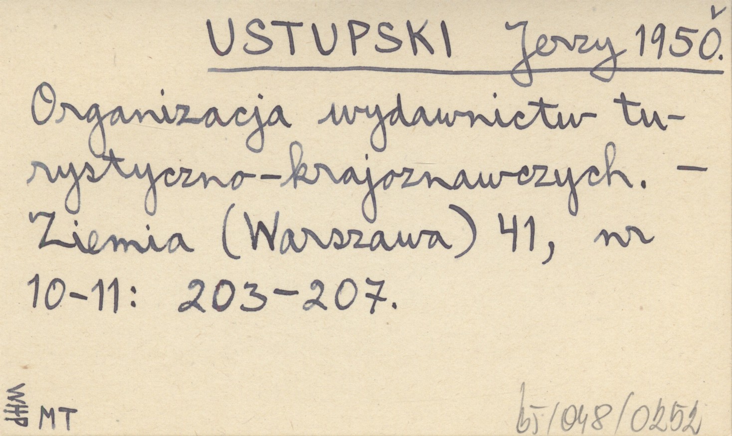 USTUPSKI Jerzy 1950 Organizacja wydawnictw turystyczno-krajoznawczych.