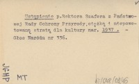 Ustąpienie p.Rektora Szafera z Państwowej Rady Ochrony Przyrody, ciężką i niepowetowaną stratą dla kultury nar. 1937