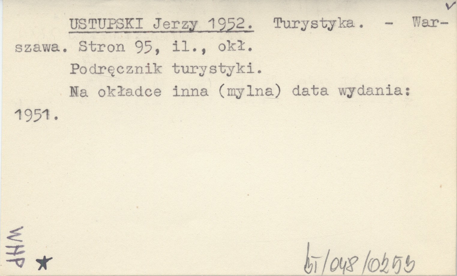 Warszawa , 95 s., il., okł. Podręcznik turystyki. Na okładce inna (mylna) data wydania: 1951.