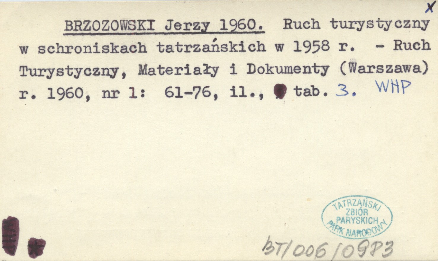 BRZOZOWSKI Jerzy 1960 Ruch turystyczny w schroniskach tatrzańskich w 1958 r.