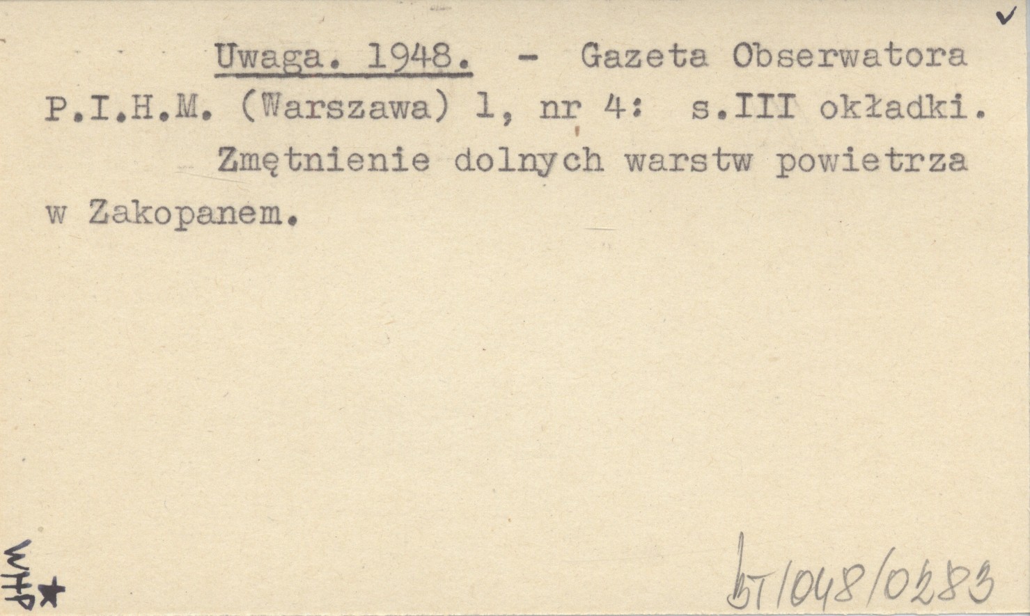 Gazeta Obserwatora P.I.H.M. (Warszawa) , 1, nr 4: III (okł.). Zmętnienie dolnych warstw powietrza w Zakopanem.