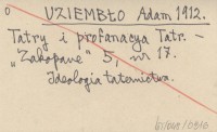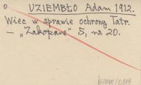 UZIEMBŁO Adam 1912 Bratnia Pomoc Przewodników Tatrzańskich.