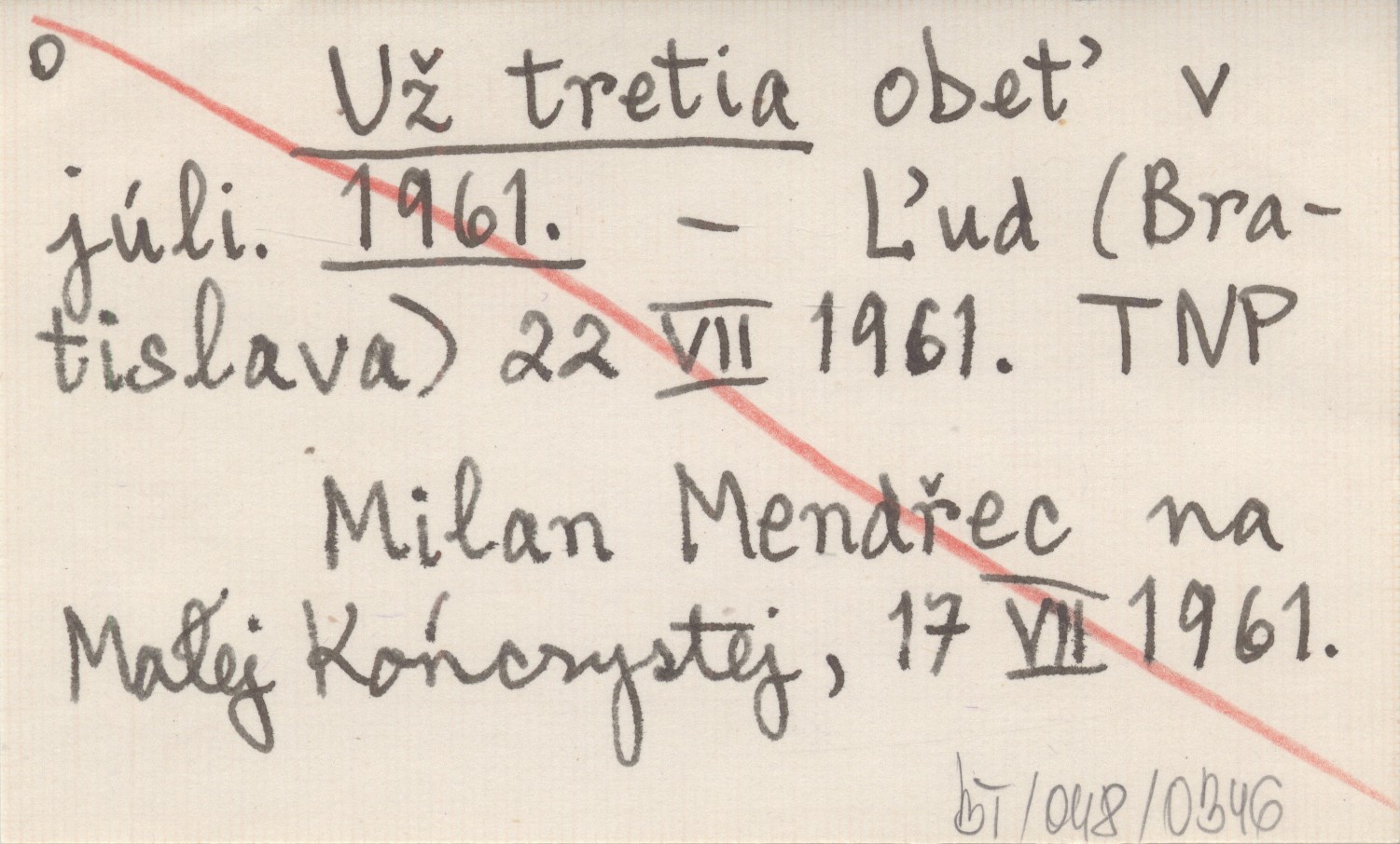 Ľud (Bratislava) , 22 VII 1961. Milan Mendřec na Małej Kończystej, 17 VII 1961.