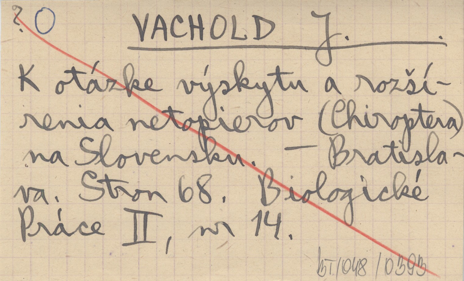 VACHOLD J. K otázke výskytu a rozšírenia netopierov (Chiroptera) na Slovensku.
