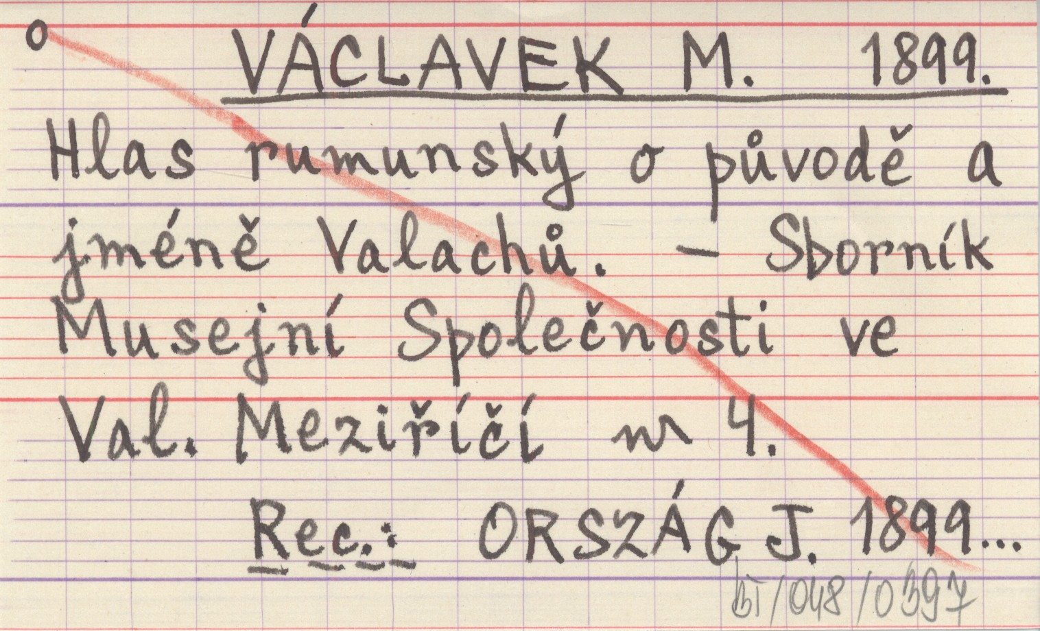 Sborník Musejní Společnosti ve Val. Meziříčí, Nr 4. REC: ORSZÁG J. 1899...