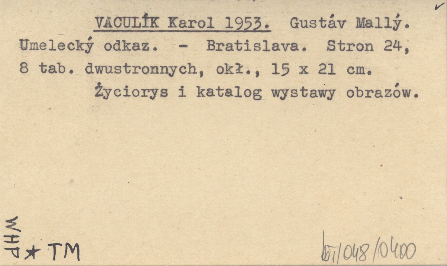 Bratislava , 24 s., 8 k. tabl. (dwustronne), okł., 15x21 cm. Życiorys i katalog wystawy obrazów.