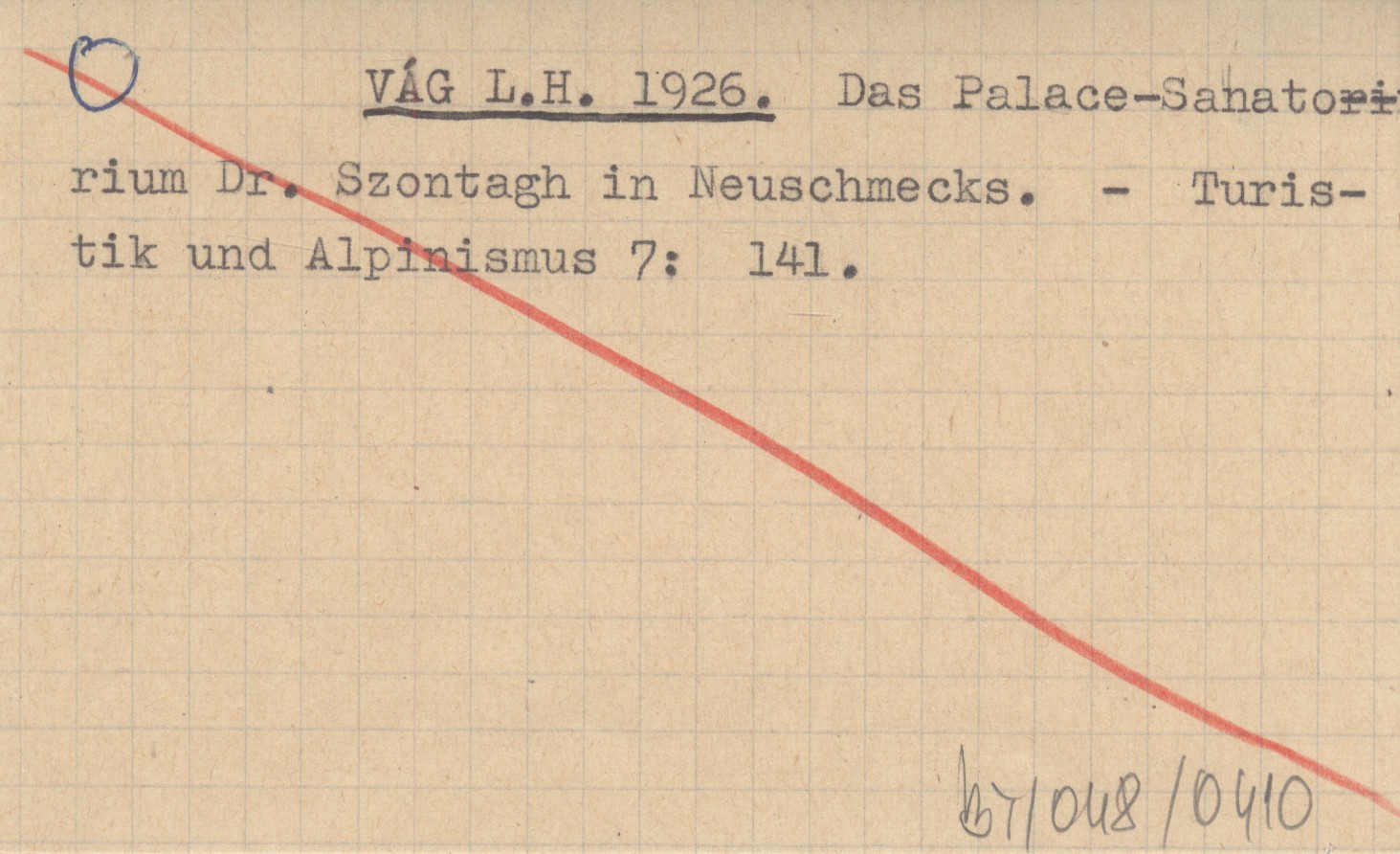 VÁG L.H. 1926 Das Palace-Sanatorium Dr. Szontagh in Neuschmecks.