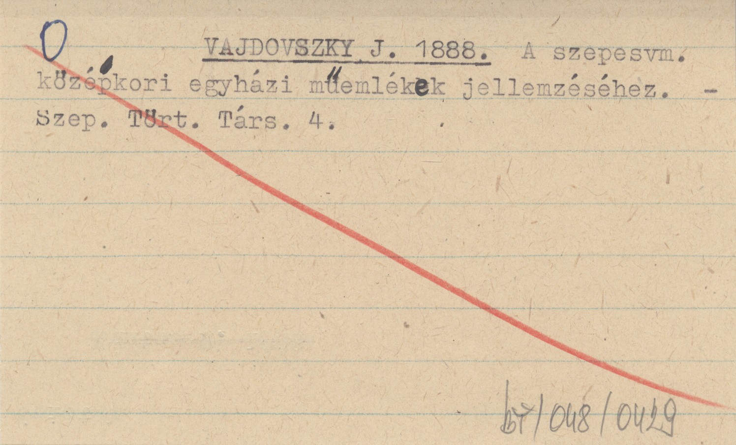 VAJDOVSZKY J. 1888 A szepesvm. középkori egyházi műemlékek jellemzéséhez.