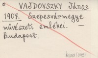 VAJDOVSZKY János 1907 Szepesvármegye művészeti emlékei.