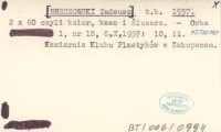 t. b. [BRZOZOWSKI Tadeusz] 1957 2 x 60 czyli kolor, kawa i ślusarz.