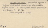 VALACH Ján 1954 Predbežná zpráva o výskume niektorých pegmatitov slovenského kryštalinika.