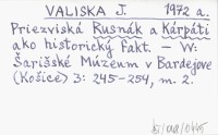 VALISKA J. 1972 a Priezviská Rusnák a Kárpáti ako historický fakt.
