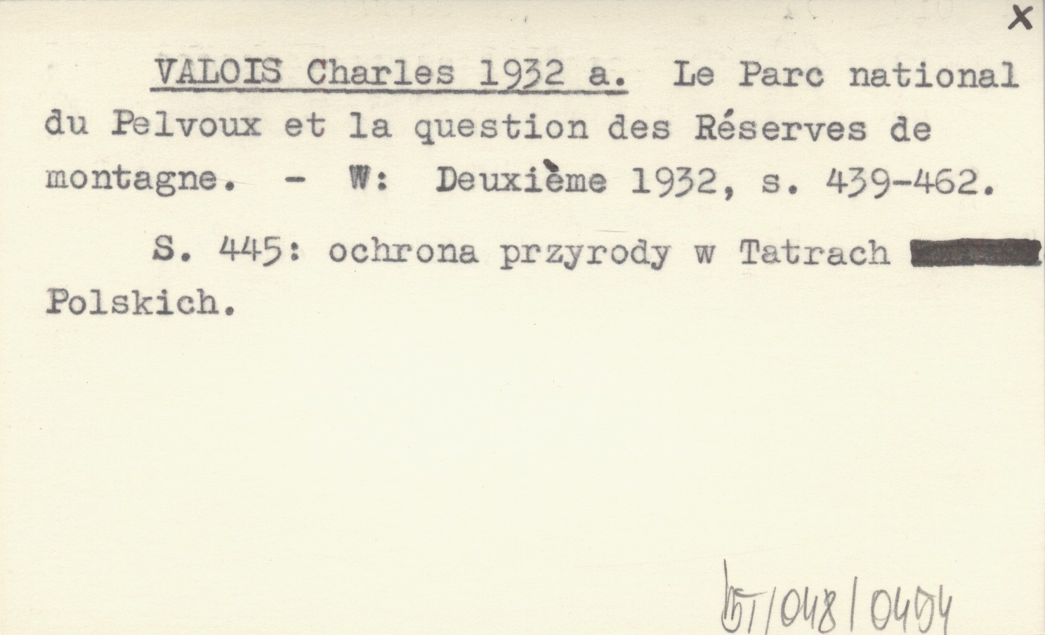 Deuxiéme 1932. , S. 439-462. S. 445: ochrona przyrody w Tatrach Polskich.