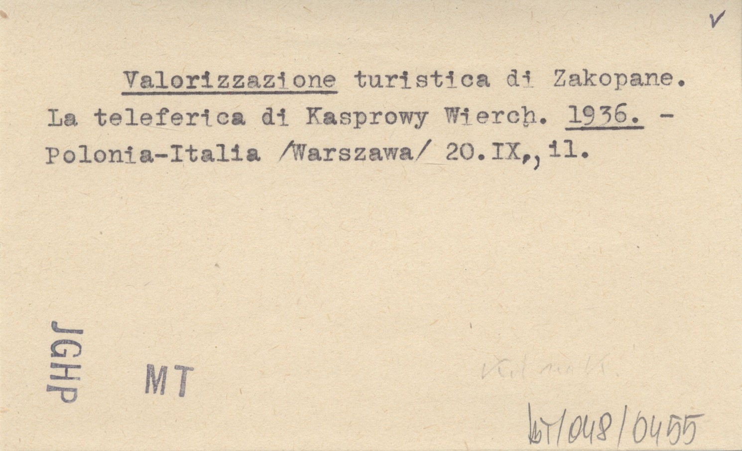 Valorizzazione turistica di Zakopane. La teleferica di Kasprowy Wierch. 1936