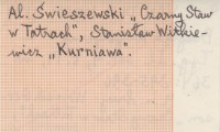 Tygodnik Ilustrowany, Ser. 4, t. 14, nr 364: 395-396. M.in. obrazy: Wojciech Gerson "Czarny Staw w Tatrach", Al. Świeszewski "Czarny Staw w Tatrach", Stanisław Witkiewicz "Kurniawa".