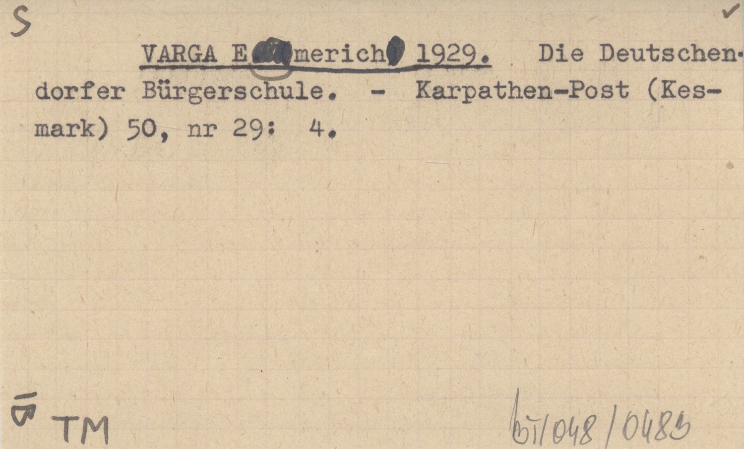 VARGA Emerich 1929 Die Deutschendorfer Bürgerschule.