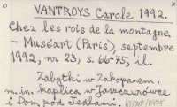 VANTROYS Carole 1992 Chez les rois de la montagne.