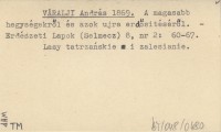 VÁRALJI András 1869 A magasabb hegységekről és azok ujra erdősitéséről.