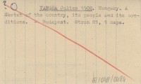 VARGHA Julius 1908 Hungary. A Sketch of the country, its people and its conditions.