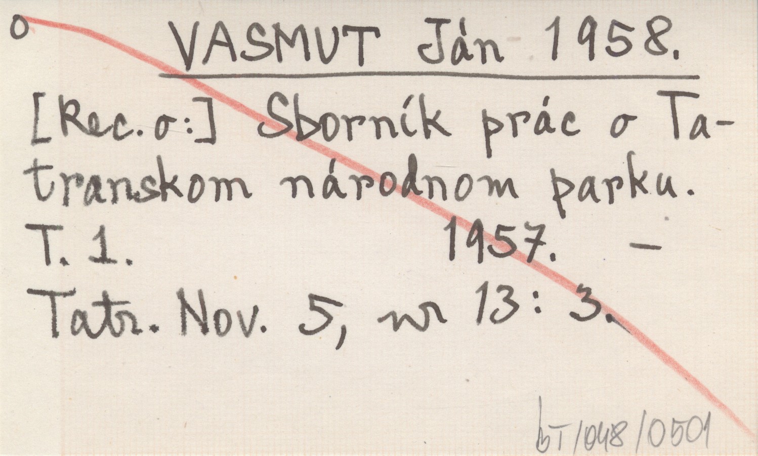 VASMUT Ján 1958 Sborník prác o Tatranskom národnom parku. T. 1. 1957.