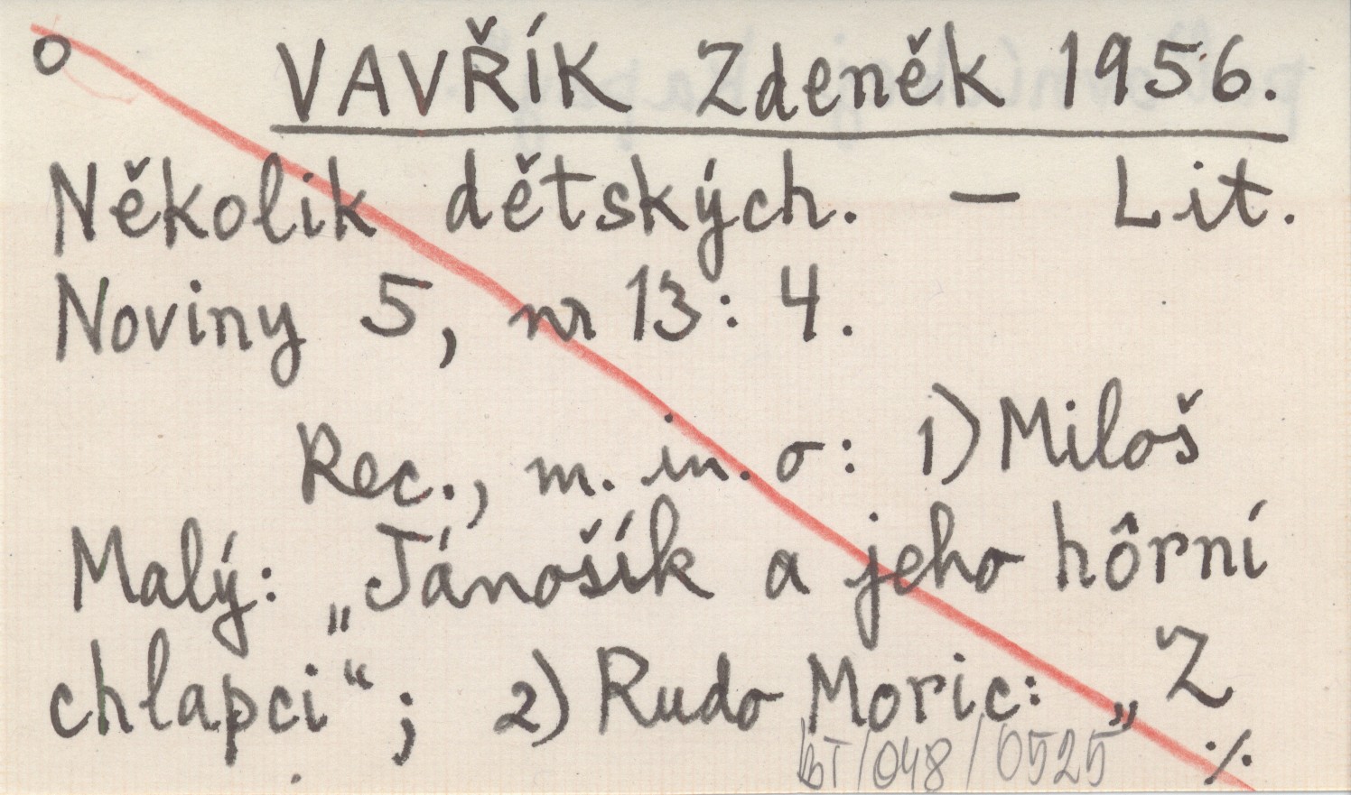 Lit. Noviny, 5, nr 13: 4. Rec., m.in. o: 1) Miloč Malę: "Jánočík a jeho hôrní chlapci"; 2) Rudo Moric: "Z po”ovníckej kapsy".