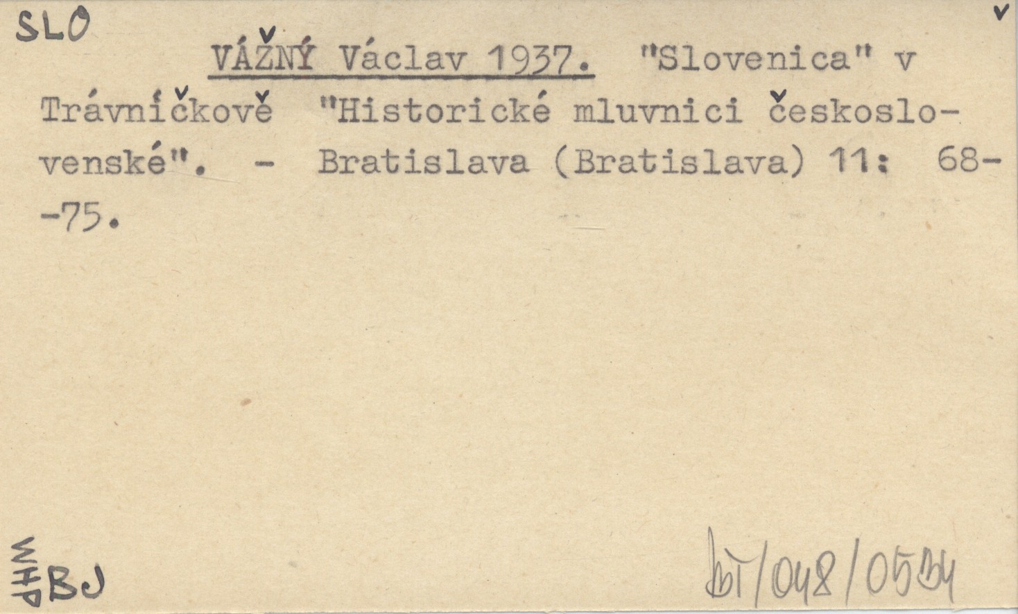 VÁŽNÝ Václav 1937 "Slovenica" v Trávníčkově "Historické mluvnici československé".